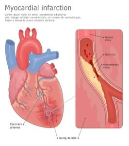 A heart attack (Myocardial Infarction) occurs when a coronary artery becomes blocked by a clot. Blood supply to part of the heart muscle stops. Without rapid treatment: